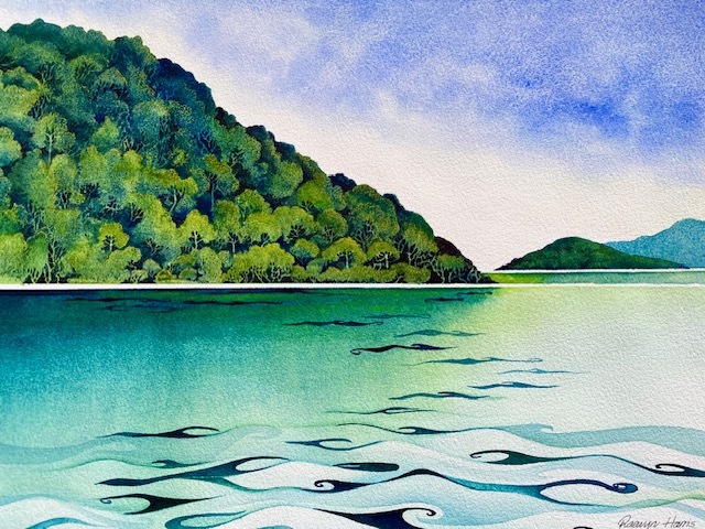 Watercolour landscape inspired by summer days on the water.Original available $950 NZ and also as a print $150