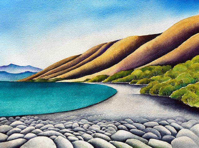 Watercolour landscape inspired by Lake Tekapo, New Zealand.$950