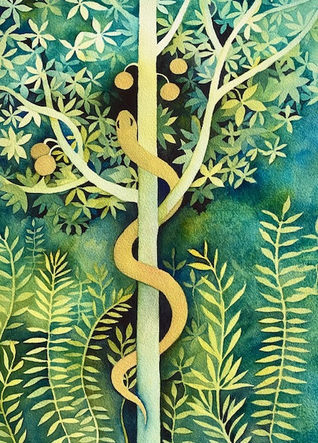 Watercolour painting inspired by ancient fresco at Pompeii.